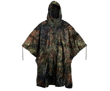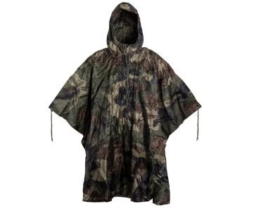 Ми пропонуємо камуфльовані, водонепроникні костюми з капюшоном і пончо з поліестеру або нейлону з проклеєними швами.Відомих виробників – Mil-Tec, Helikon-Tex, Texar, Camo-Tec, M-Tac, Kiborg та інші. Такі вироби не лише утримують сухість, а й дозволяють зберігати мобільність під час пересування.