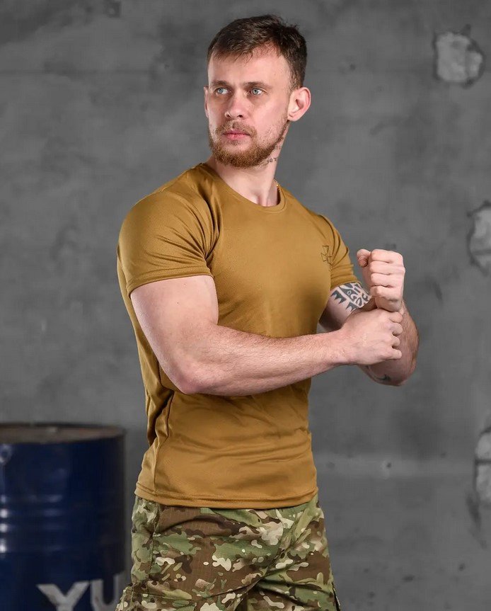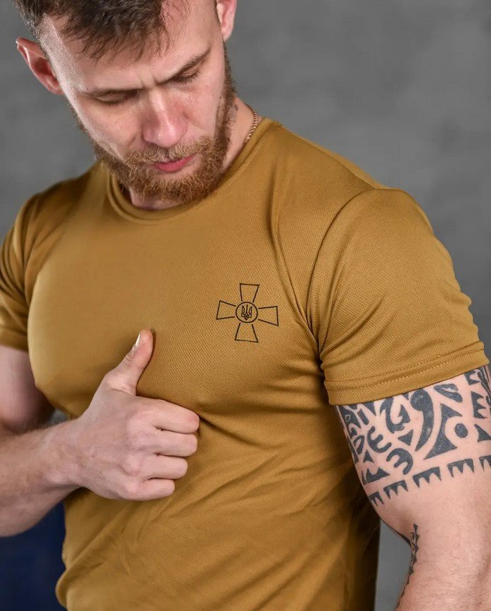 Футболка (термо) Coolmax з тризубом і написом ЗСУ койот S