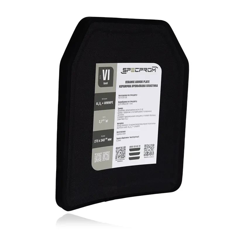 Ця бронеплита виконана з кераміки, алюмінію оксиду з додаванням НВМПЕ (Надвисокомолекулярний поліетилен), що забезпечує міцність на рівні військових стандартів. Вона відповідає найвищим стандартам балістичного захисту, а тестування підтверджують, що вона здатна витримати три прямі влучання бронебійних боєприпасів калібру 7,62×54 мм Б-32 зі снайперської гвинтівки СВД. Випробування проводяться з відстані 10 метрів, що повністю відповідає стандартам ДСТУ та моделює реальні бойові сценарії. Тож ця бронеплита створена для тих, кому потрібен найвищий рівень безпеки без компромісів – військовослужбовців, спецпідрозділів, бійців штурмових груп, правоохоронців та представників приватних військових компаній.