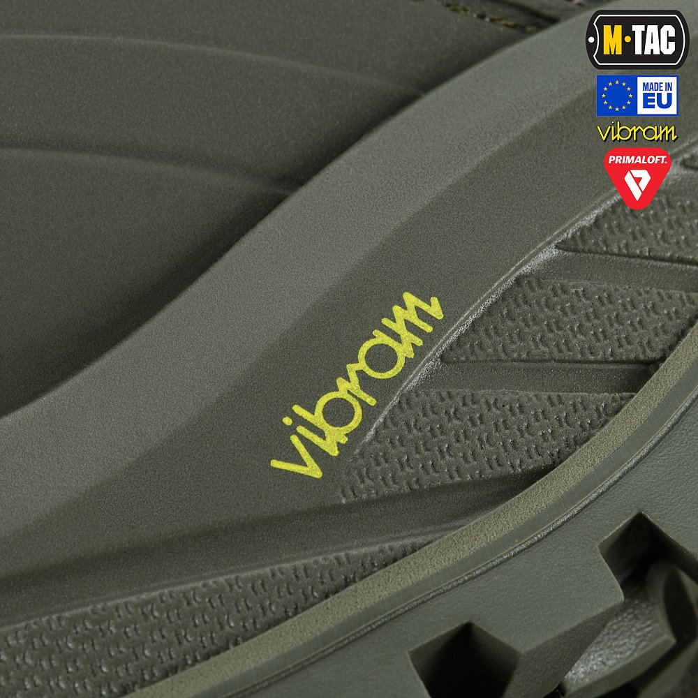 M-Tac черевики Tactical winter boots утеплені високоякісним наповнювачем Primaloft. Даний матеріал забезпечує відмінну теплоізоляцію та надійно захищає від холоду. Завдяки своїм унікальним властивостям утеплювач Primaloft легко випаровує вологу при намоканні та швидко сохне. Також він досить легкий, добре пропускає повітря, органічно поєднуючи в собі м'якість пуху і міцність синтетичного волокна.
