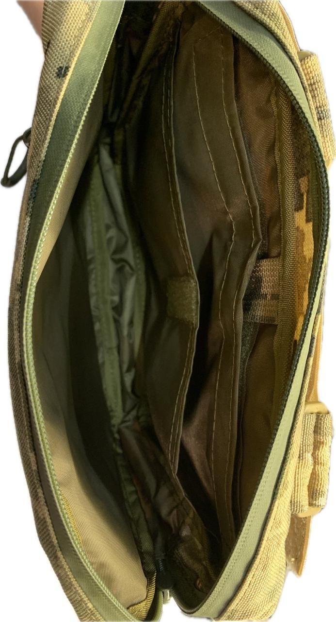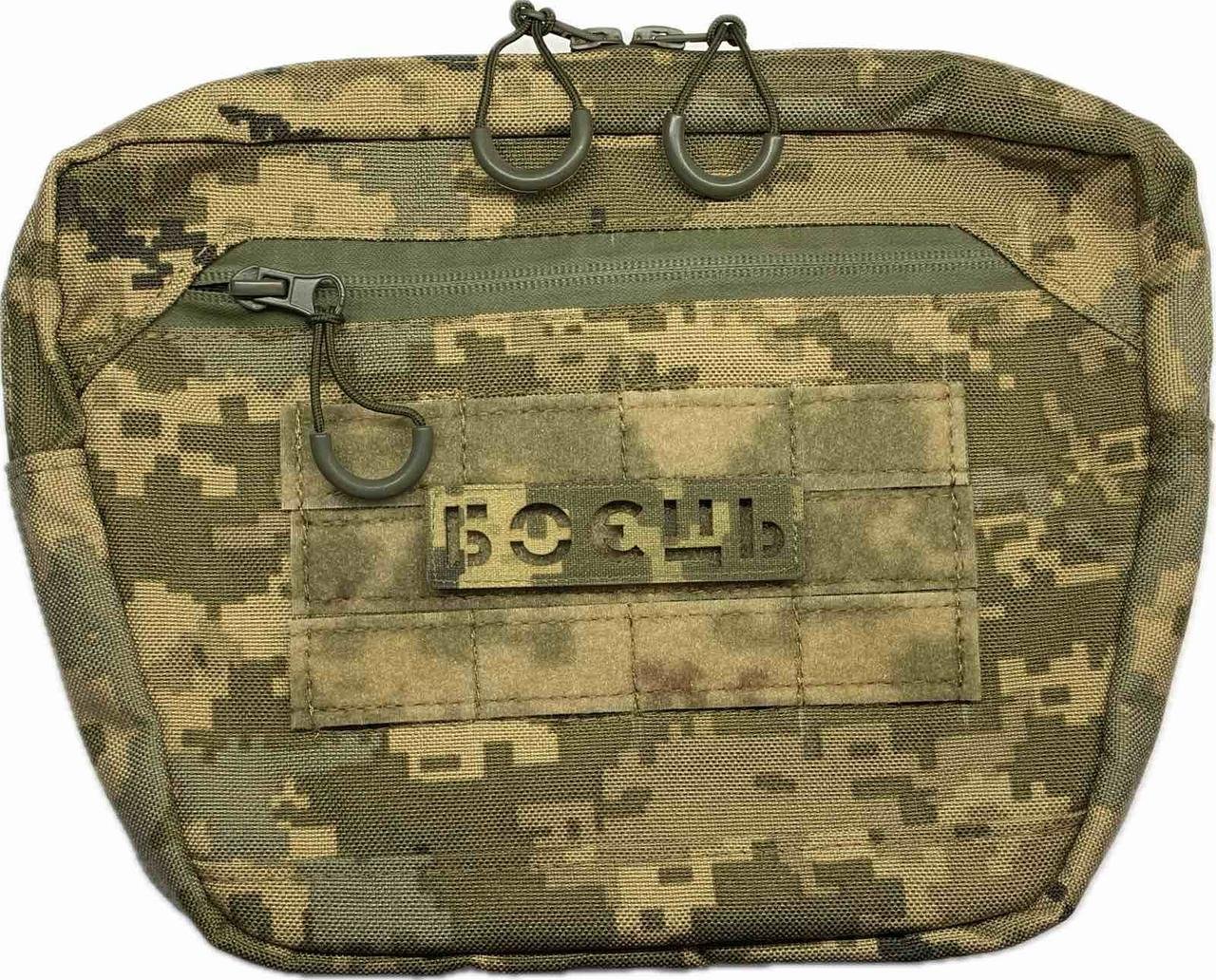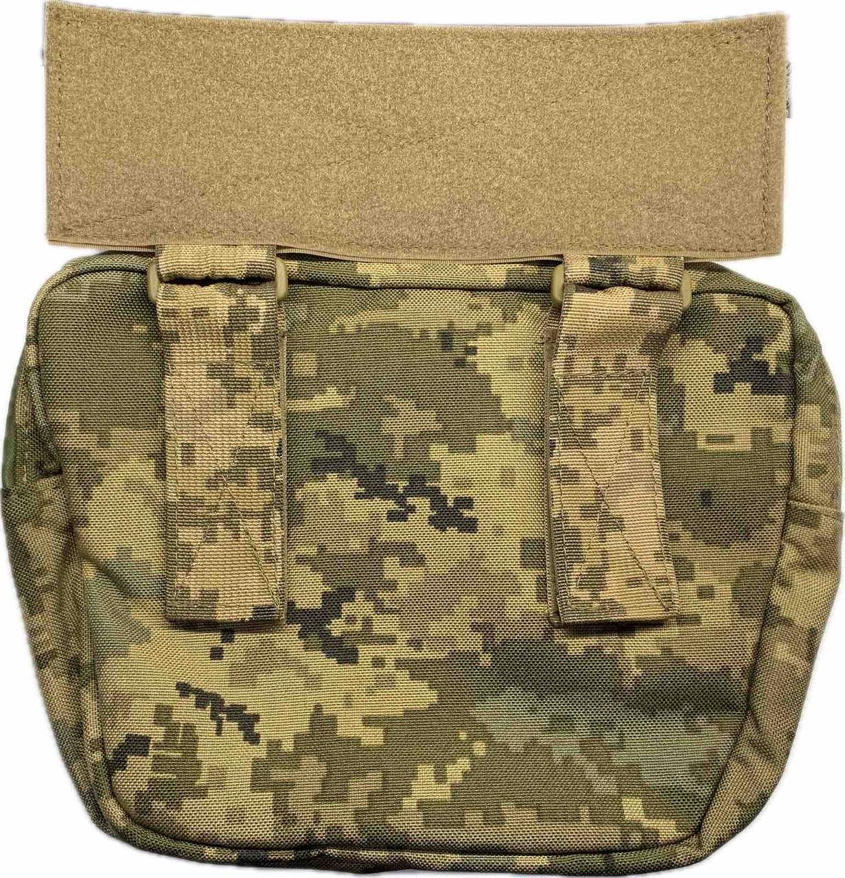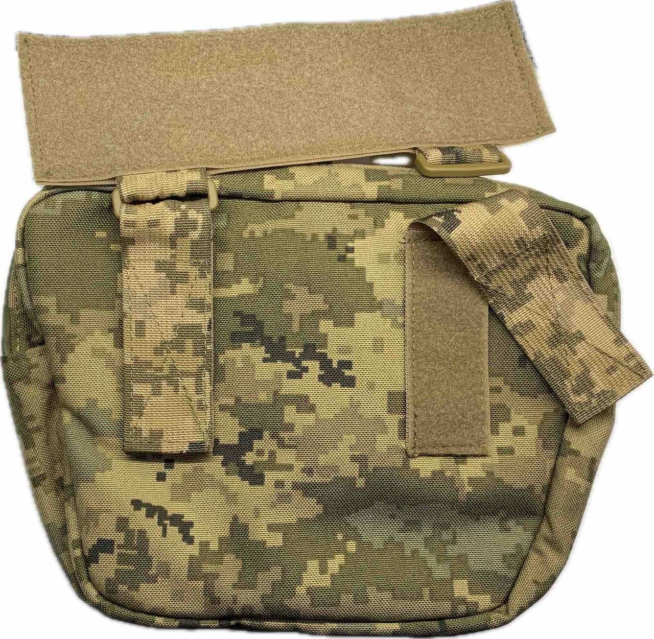 Містка та функціональна сумка-напашник розміру XL (25,5×19×6,5 см) — надійне рішення для доповнення індивідуального комплекту спорядження. Може використовуватись як звичайна тактична сумка або як захисний елемент пахової зони при встановленні м’якого балістичного пакета (продається окремо).
