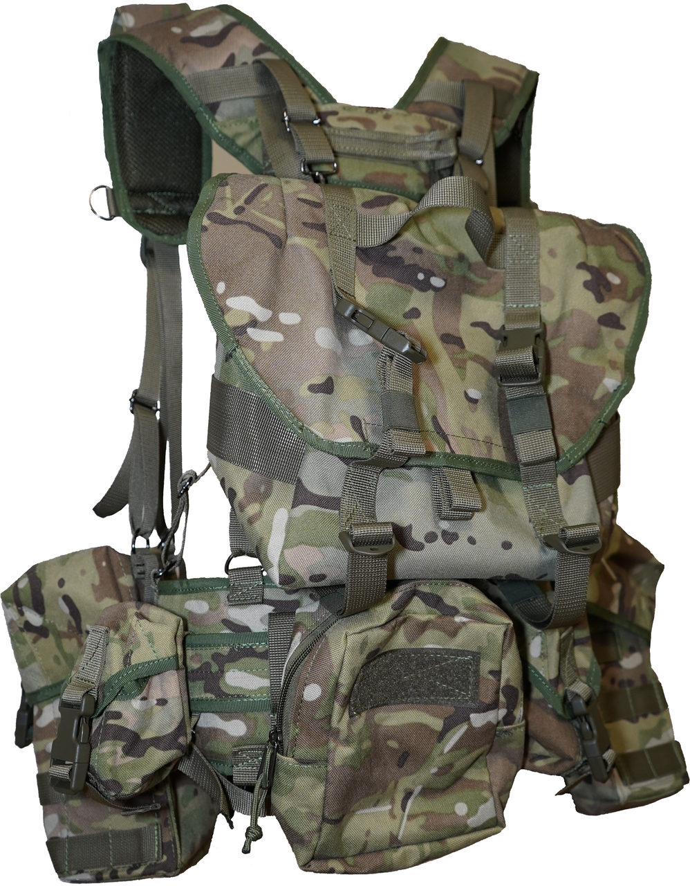"SMERSH" belt and shoulder system for machine gunner - reliable field equipment designed to meet the specifics of the machine gunner's combat missions. The system allows to conveniently and reliably carry ammunition, boxes of ammunition, grenades, medical supplies and communications during long drives over rough terrain.