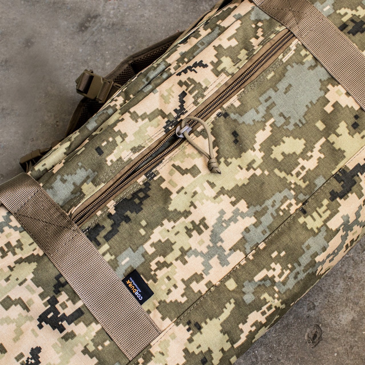 Основна блискавка прихована клапаном від промокання, ручки для перенесення з міцної стропи з потовщеннями з кордури.
