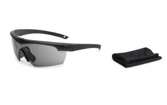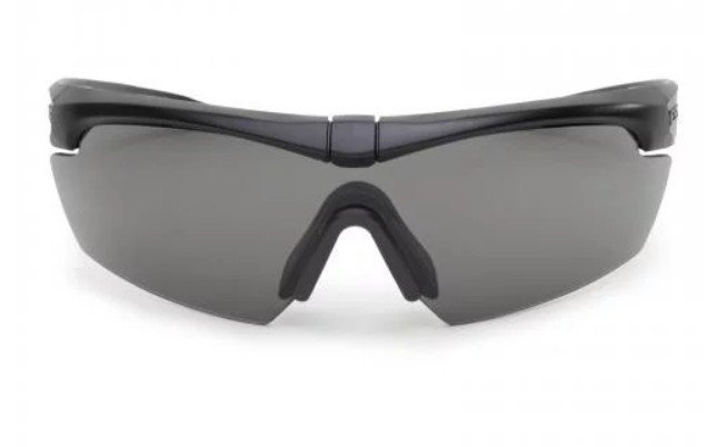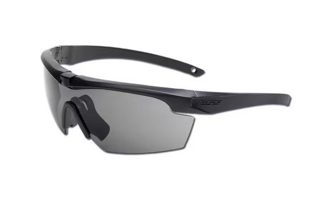 Тактичні окуляри ESS Crosshair у чорному кольорі з тонованим забралом кольору Smoke Grey. Окуляри мають систему швидкої та легкої зміни забрала завдяки застібкам DeadBolt. Модель була створена як економічна версія моделі Crossbow, а нова оправа була розроблена у відповідь на побажання користувачів і вирізняється дуже хорошою посадкою на будь-якій голові.